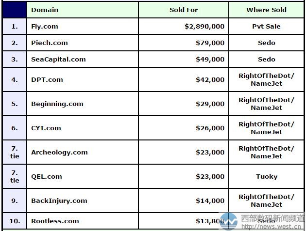 超越两数字01.com!域名fly.com以1991万元领跑DN榜三五互联(35.com)5月4日消息,本期的DN交易榜(4.24-4.30)上,虽然短字符域名和单词域名各有千秋,但榜单的冠军宝座却被极为短小精湛的单词域名fly.com以2,890,000美元的高价摘得,约合人民币1991万元。这也是目前为止,今年DN榜上成交价最高的域名,甚至超过以1,820,000美元成交的01.COM。 域名fly.com注册于1993年,距今已有24年历史了,在英文中有“飞行,飘荡”的意思。因其外形尤为短小精湛,含义又十分通用,适合搭建多个类型的网站平台。据了解,这笔域名交易由知名投资人George Kirikos在TravelZoo公司今年1季度的sec文件中发现,该公司曾在2009年以176万美元收购,时隔几年,如今再转手,净赚113万美元。 排名第二的是人名域名piech.com,成交价为79,000美元,约合人民币54万元。这个域名是英文中的人名“皮耶希”,对应有曾经叱咤风云的大众集团董事长皮耶希(FerdinandPiech),外界称其为大众汽车的教父。 紧随其后的是组合域名seacapital.com,成交价为49,000美元,约合人民币33.7万元。该域名对应海外有一家名为Sea Capital的外汇交易公司,官网启用的域名为seacapital.co.uk。从保护品牌域名的角度来看,Sea Capital很有可能就是域名seacapital.com的背后买家。 英文单词域名除了seacapital.com以外,含义通用的“开始”域名Beginning.com也以2.9万美元结拍;有“考古学”之意的Archeology.com成交则为2.3万美元;另外组合域名“BackInjury.com”则以1.4万美元上榜,直译为“背部损伤”。 除了单词域名以外,本期DN榜上还有不少三字母域名也成交了。比如dpt.com(4.2万美元)、cyi.com(2.6万元)、qel.com(2.3万美元)。其中,“dpt”有“大炮台、打喷嚏、大葡萄”等意思,潜在终端是德普特集团(dpttouch.com)。 本文转载自新闻资讯,原文链接:超越两数字01.com!域名fly.com以1991万元领跑DN榜